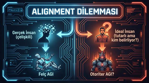 AGI bu çelişkileri kopyalarsa, felç olur. Karar veremez. Ya da daha kötüsü, bizim en kötü özelliklerimizi optimize eder.