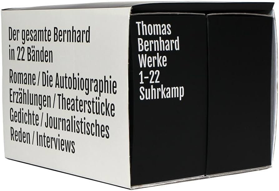 “Thomas Bernhard Werke 1-22 Suhrkamp ” başlıklı Thomas Bernhard’ın yaşamı boyunca ürettiği tüm eserlerin bir araya getirildiği 22 ciltlik, özel tasarım kutusu içerisindeki kitap seti; edebiyat düşkünü kitapsever ve koleksiyonerler için editoryal çalışmasından tasarımına kadar sahip olma dürtüsünü kaşıyan, kayıtsız kalınamayacak bir çalışma.